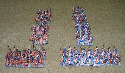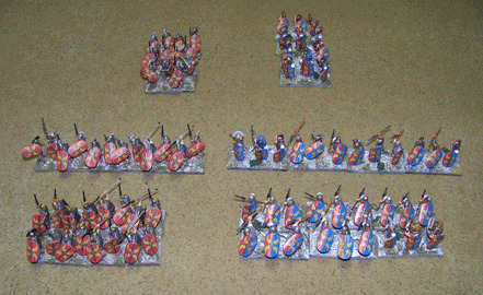 columns. If the legion deployed to the front it would form a line in stages coming off column. Here we see the two legions side by side.